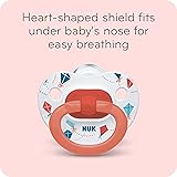 - The NUK pacifier’s unique breast-like nipple is shaped to soothe baby just like mom. This makes for an easy transition from breast to pacifier and back. Invented over 60 years ago by pediatric dentists and doctors, NUK’s unique orthodontic nipple shape helps promote healthy oral development. The NUK heart-shaped shield fits perfectly under baby’s nose for easier breathing and prevents irritation.