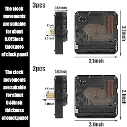 Nice DIY clock repair set: This battery clock replacement mechanism set comes with 5 quartz clock movements, 12 pairs of clock hands, 5 gaskets and 5 hang hooks, and the enough quantity to use and replace, provides a variety of styles to choose from Size details: the total shaft lengths are approx 13 mm/ 0.51 inches, 18 mm/ 0.7 inches and the thread lengths are approx 5mm/ 0.2 inches, 11mm/ 0.43 inches. Jump second movement is suitable for 2 mm/ 0.079 inches, 11 mm/ 0.43 inches thickness of clock panel; Suitable size is for your easy use and storage 12 Different styles of hands: this clock kit comes with 12 pairs of clock hands in different styles and length for your options, so it is great for clock creations and repairs while providing a decorative effect Practical: the quartz DIY wall clock mobile mechanism has nice precision and is equipped with sweeping motion, which can provide the watchmaker with reliability and keep quiet when you are reading or sleeping Wide Application: These clock repair replacement part kit can be applied in bedroom, living room, office, classroom, restaurant, etc, fit for cross-stitch, three-dimensional embroidery craft clock, quartz wall clock and so on.