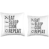 Eat Sleep Code Repeat - Funny Coding Throw Pillow