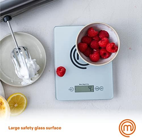 - OFFICIAL MASTERCHEF PRODUCT - This professional quality glass top silver kitchen scale is an official product of MasterChef the TV Series.