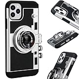Awsaccy Camera Phone Case for iPhone 13 Pro Max Camera Case Vintage Cover Cute 3D Cool Unique Design Silicone Case with Removable Neck Strap Lanyard for Girls Women Black