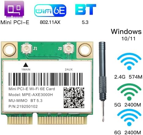 WiFi 6E Half Mini PCI-E WiFi Network Card 802.11AX AC MPE-AXE3000H 2.4GHz 5GHz 6GHz 5400Mbps Wireless Card BT5.2 MU-MIMO Mini PCIe Wi-Fi 6E Adapter OFDMA vPro for Windows 10/11 PC Laptops