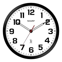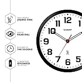 Sharp Atomic Analog Wall Clock - 12" Black Stylish Frame - Sets Automatically- Battery Operated - Easy to Read - Easy to Use – Modern Design and Style