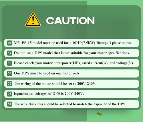 DPS 15HP MY-PS-15 Usado para Motor de 10HP (7.5kW) 30A, Convertidor Monofasico a Trifasico, 1 Debe Usarse para 1 Motor Solo, Entrada/Salida 200-240V, Listado UL