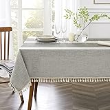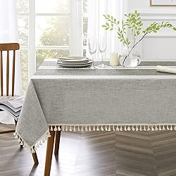 TABLE CLOTH SIZE : Tablecloth size 55 x 70 inches, suit for table range: 31 ''x46 '' to 39 ''x54 '', rectangle table, 4-6 seats.You’ll be able to choose a luxurious and ideal tablecloth for your dining table MATERIAL : Cotton Linen Fabric is composed of 50% polyester and 50% cotton, combines the comfort of cotton and the firming of hemp with the perfect proportion, which is more wrinkle free and shrink-proof than other materials WATERPROOF AND WRINKLE FREE : QIANQUHUI rectangular tablecloth with extra water resistant coating makes the table covers spill and spot-proof and doesn’t need ironing, touches smooth,not easy to be scratched to ensure the the perfect table cover protector for your table OCCASIONS : Beautiful embroidered tablecloth with tassel hem, rustic farmhouse tablecloth design, creating a vintage but elegant home decoration. It is a great indoor table protector for dining room,kitchen table pads, coffee table cover, as outdoor tablecloth for birthday party, holidays,wedding tablecloth,buffets,picnics,brunches,catering, restaurants,hotel,patio table and so on WARM TIPS : Machine washable tablecloth, the tassel is tightly sewed and will hold well after washing. Better wash in cold water and tumble dry under low temperature. Require little or no ironing. DO NOT BLEACH