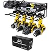 - [Mucha más capacidad de carga] Este portaherramientas eléctrico con un diseño resistente le ayudaría a cargar herramientas de un máximo de 100 libras utilizando los 4 anclajes de pared. Este organizador de herramientas eléctricas permite una carga máxima de 40 libras y 4 ranuras para herramientas con una capacidad máxima de 80 libras.