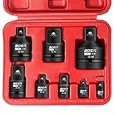 BOEN 8 Piece Impact Socket Adapter and Reducer Set, 1/4" 3/8" 1/2" 3/4" Drive Socket Adapter Set with Durable Case for Impact Driver Conversions (Upgraded)