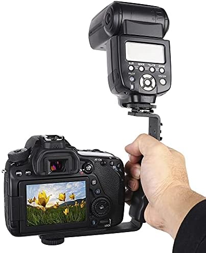- 【Comfortable for grip】:Camera flash bracket,ergonomic designed handle is perfect and comfortable for grip.