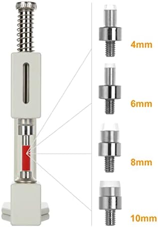 - El paquete incluye: 1 máquina de enclavamiento de perlas, 5 cabezales de tornillo de diferentes tamaños: 4mm, 5mm, 6mm, 8mm, 10mm, 1000 clavos de prensa manual, 2 cajas de perlas de diferentes tamaños, 670 por caja, 1 pinza, 2 bandejas.
