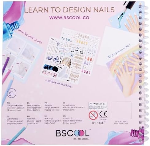 BSCOOL - Drawing, Coloring & Activity Book. Nail Design Book with Stickers and Guides. Fashion Design Sketchbook for Kids 5 and up. Little Designer Creativity Book - Nail Sticker Book. Gift for Girls