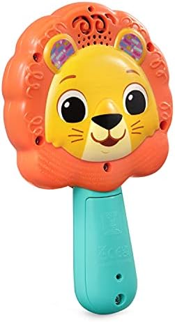 Gaze at your glorious self in the I See Me Lion Mirror™! Have a giggle when the lion makes a surprise appearance in the mirror. Peek-a-boo! Help build self-awareness and positive feelings with this interactive mirror. The light-up heart plays loving and encouraging phrases while giving little ones a chance to develop fine motor skills with button-pressing. Press the lion’s paws to hear about parts of the body and to play four sing-along songs and ten melodies. Interactive phrases help little ones build language skills while they explore this adorable handheld, baby-safe mirror. Look at me! Intended for ages 12–36 months. Requires 2 AAA batteries. Batteries included for demo purposes only. New batteries recommended for regular use.