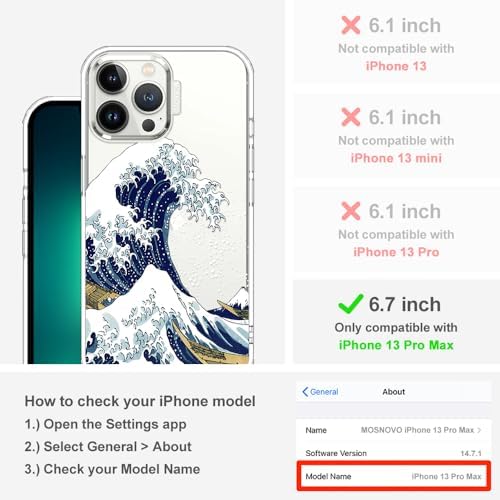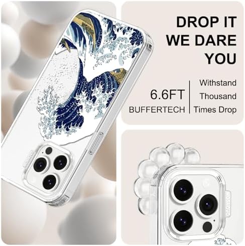 MOSNOVO Case for iPhone 13 Pro Max, [Buffertech 6.6ft Military-Grade Drop Protection] [Anti Peel Off Tech] Clear TPU Bumper Phone Case Cover Design - Great Wave