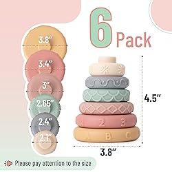 - Mr. Pen stacking rings toy set includes 6 brightly colored rings of varying sizes, designed to stimulate children's visual perception and introduce them to different sizes and colors in a fun, interactive way.Each ring is crafted from high-quality, durable material that is safe for children, ensuring the toy withstands even the most enthusiastic play. The smooth edges and non-toxic materials provide a safe and engaging play experience.This educational toy helps develop essential skills such as hand-eye coordination, fine motor skills, and basic cognitive abilities. By arranging the rings in different orders, children can explore concepts of size and sequencing.Mr. Pen stacking rings toy is easy for little hands to grasp and play with, promoting independence and confidence in their abilities. It's a perfect toy for individual play or to share with friends.The stackable design makes this toy easy to store and transport, making it an excellent choice for playtime at home, school, or traveling. Its colorful and engaging design makes it an attractive gift for birthdays, holidays, or just because.