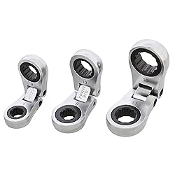 [Reach Tight Spaces]: Navigate awkward angles and tight spaces with the VIM Tools Ratchet Wrench Set; Fix dashboards, door panels, engine bays, and other automotive applications [Bend and Hold]: Compact reversible ratcheting wrench set fits in the palm of your hand; Double joint design allows you to fold the flex head wrench in half and meets ANSI torque specifications; Bend the ratchets in both directions to fit your needs [Store Your Tools]: Easy to read sizes are etched onto the foam holder and on each flex head ratcheting wrench; 3-piece ratcheting wrench set includes a small, medium, and large ratchet [Complete Jobs Quicker]: Chrome wrench ratchet set is built for strength and longevity; 5-degree swing arc is designed to reach spots that standard wrenches will not fit; 72 tooth ratcheting mechanism speeds up jobs without needing to lift the ratcheting wrench flex head [Choose Your Size]: Small ratcheting wrench set includes 3 tools; Sizes include a 7 x 9mm, 8 x 10mm, and an 11 x 13mm flex head ratcheting wrench; Each piece has 2 different sizes with a total of 6 different ratchet options to choose from