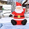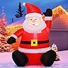 Papá Noel inflable navideño Comin de 4 pies con luz LED integrada, ilumina a Papá Noel sentado levantando la mano, decoración navideña para exteriores, decoración de patio inflable para Navidad, jardín, césped, fiesta