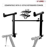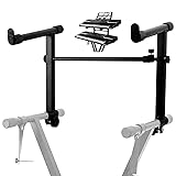 【Small Footprint】With its compact design, this product allows you to add support for an additional keyboard to a keyboard stand, keeping multiple keyboards within reach without needing separate stands. This creates an organized workspace. 【Ergonomic】Designed with ergonomics in mind, this 2-tier keyboard stand features an adjustable tilt angle that locks in place, ensuring comfortable and reliable positioning for keyboards, electric pianos, MIDI controllers, synthesizers, and organs weighing up to 60 pounds. 【Adjustable】The length of the piano keyboard stand adjusts from 19.5" to 30" to fit various keyboard stands and instruments. The base seamlessly and securely connects to the main stand's tubing for enhanced stability and flexibility. 【Compatible】This product is designed for X-style keyboard stands and can be added to a two-tier setup. Included plugs seal the main stand's tubing for a clean look when the second tier is removed. 【Professional】With a durable black finish that resists chips and scratches, this double keyboard stand maintains a sleek look, blending seamlessly into any stage or studio setup.