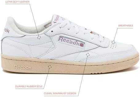 Reebok Club C 85 Vintage Tennis Sneakers for Women, Casual White Womens Shoes, Size 5 to 11 - White/Chalk/Infused Lilac, 8.5 Medium