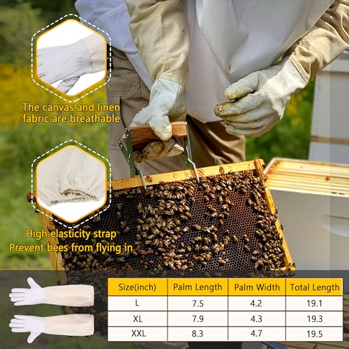 • Transpirable y Cómodo— Tela de la ropa de apicultura: 60% algodón, 40% poliéster, 280gsm. Los trajes de apicultor tienen gran elasticidad, duraderos y cómodos. Tela de los guantes: piel de cabra, algodón y tela de lino. Los guantes de manga larga permiten usar varias herramientas con flexibilidad. Puedes disfrutar del proceso de apicultura.
