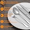 • ELEGANT SHAPE AND EXQUISITE WORKMANSHIP: Highly mirror polished, smooth edges and the classic shape design make this flatware set stunning and look expensive. It is very suitable for all your home styles and can match any tableware you have. There are no rough spots or sharp edges, very comfortable to use without hurting your mouth at all.