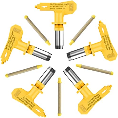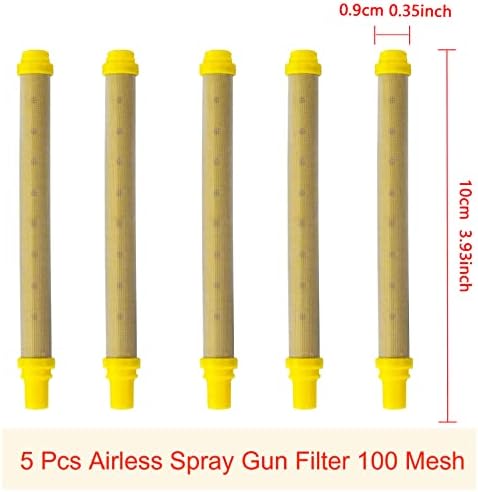 • 【Paquete incluye】5 piezas de boquillas para pulverizador sin aire y sello de punta en 5 tamaños (213, 315, 417, 517, 523), 5 piezas de filtros de pantalla de pistola de 100 mallas amarillas. Suficiente para su uso y reemplazo en la vida diaria.