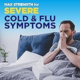 - Compare to Vicks NyQuil Severe Cold and Flu active ingredients. When a cold or the flu strikes, you need maximum strength relief so you can rest at night. Each dose of Amazon Basic Care Night Time Severe Cold and Flu Relief provides a powerful combination of pain reliever, fever reducer, nasal decongestant, cough suppressant and antihistamine. This liquid cold medicine treats severe common cold and flu symptoms, such as minor headache, fever, sore throat, minor aches and pains, nasal/sinus congestion and sinus pressure, sneezing, runny nose and cough. In original flavor, this nighttime medicine is sugar free and gluten free. For ages 12 and older.