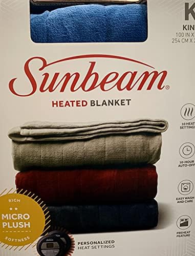 his Sunbeam Channeled Microplush Electric Heated blanket is just the thing to warm you up on cold winter nights. This comfortable warming blanket is perfect for getting rid of the chills. The Controller has 10 heat settings and 10 hour auto off, allowing you to get just the right temperature and allows you to turn down your thermostat to save energy and money. The therapeutic heat settings can be controlled so you stay comfy whether sleeping in or just relaxing on your couch. The blanket warms up fast and is efficient in keeping you comforted. Do not cover or wrap the controller and make sure both items are in a well ventilated area when in use. Additional safety certification for this product can be viewed on the UL or Intertek websites. Overheat protection promotes a safe user experience. Reference included safety instructions before use to ensure safe operation. Air dry or tumble dry on low heat, wash alone, do not bleach and do not iron. IMPORTANT - NOT for infants, children, incapacitated person or animals and pets. King Size 100"" X 90"" ***Note for Customers Outside of North America. These heated bedding products were made to work with 110V Electrical systems. If you live in a country that utilizes a different electrical system you may need to use a converter for these products to function. The act of using a converter automatically voids the warranty on these products. **All Sunbeam Blankets are rigorously tested and approved by a third party (UL or ETK Intertek) to comply with current industry safety standards. Please reference the included use and safety instructions and attached product label picture to insure safe operation. Additional safety certification for this product can be viewed on the UL or Intertek websites