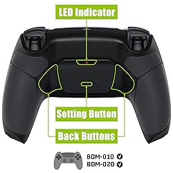 Turn your existing controller for PS5 into a professional eSport elite controller. Only compatible with PS5 Controller BDM-010 & BDM-020 models. (Please check your controller's compatibility carefully before purchasing. Method 1: Check your controller as per the second picture shown. Method 2: Check how to recognize your BDM model on YouTube by searching "extremerate check bdm for ps5 controller" or "fiE4BWSlBRI");NOT fit for PS5 BDM-030 BDM-040 BDM-050 BDM-060 models and other controller 2 Ergonomic programable back buttons attachment added. Rubberized handles can enhance hand feeling and get a better grip to your controller Maximum 15 buttons can be assigned to the back buttons High hands-on skills required. Require customers to take apart the controller to install this kit. Get the installation video guide by searching "eXtremeRate RISE 2.0 Remap Kit for PS5" or "QzSqI_qsKXM" on YouTube. Soldering is optional. If you don't need the L3, R3, and touchpad buttons can be remapped, then soldering is not necessary Compatible with PS5 controller eXtrmeRate LED Kit, Clicky Hair Trigger Kit, Face Clicky Kit, all replacement Buttons and Shells. NOTE: This is only a RISE Remap kit set, WITHOUT controller and any other parts