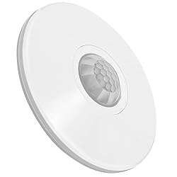 - This ceiling mount occupancy sensor uses passive infrared (PIR) technology to detect movement in the surrounding space and automatically turn the lights on and off based on motion in the room. It is designed to replace a standard light or fan switch and is ideal for 120V residential applications including entryways, hallways, closets, storage areas, garages or any other area that requires a light or fan to be active while occupied. The PIR sensor detects changes in the infrared energy given off by occupants as they move within the coverage area. When occupancy is detected, a self-contained relay switches the connected load on. An internal timer automatically turns off the load after a selectable period of inactivity ranging from 18 seconds to 10 minutes. This sensor also has adjustable sensitivity, time delay and light level settings so that you can customize it for your application. It has 360-degree coverage with a radius of 10ft - 13ft when mounted at a height of 10 ft. It also has a detection angle of 150 - 180 degrees. This sensor is ETL Listed and comes with a 1-year warranty.