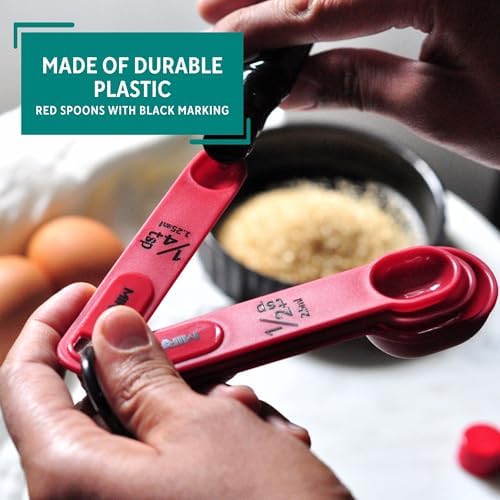 - EFFICIENT AND VERSATILE: Made of durable plastic with a vibrant red color and black markings, this set is designed for both style and functionality in your kitchen