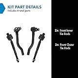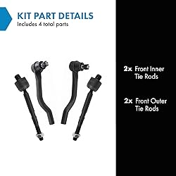 Kit Includes: 2 Front Inner Tie Rods; 2 Front Outer Tie Rods Reference Numbers: 53521TBAA01; 53540TBAA01; 53540TETH01; 53560TBAA01; 53560TETH01; 101-8406; 101-8434; 101-8435; 29040674; 29040675; 35ES801250; CE0252L; CE0252R; ES801250; ES801251; EV801274; MS60658; MS60659; MS60737; TA3292; TA3293; X17TE6833 YOUR TRUSTED DIY VIDEO SOURCE: TRQ offers the largest catalog of DIY videos for replacement parts, making installation easier and repairs more accessible. Our mission is to help you "View Before You Do," with hundreds of new videos added weekly. TRUST & COMPATIBILITY: For over 25 years, TRQ has been the premium choice for direct-fit replacement parts. Confirm fitment with the Amazon Garage "confirmed fit" feature and review our full compatibility chart below before purchase. EASE OF INSTALLATION: Save time and effort with pre-assembled components designed as direct replacements for the original equipment, ensuring precise fit and eliminating the need for modifications.