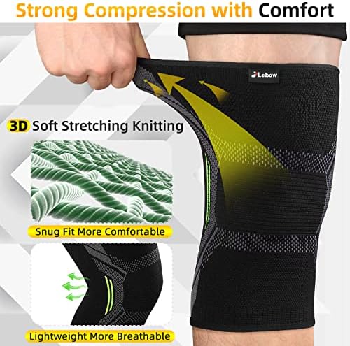 JLebow 2 Paquete Rodilleras para Dolor de Rodilla para Mujeres y Hombres, Diseño de Compresión para Entrenamiento, Correr, Gimnasio, Fitness, Levantamiento de Pesas Rodilleras de Alta Elasticidad para Desgarro de Menisco, LCA, Artritis, Dolor en las Articulación