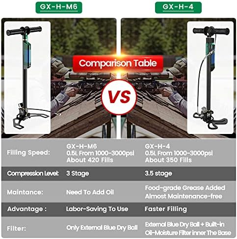 GX PUMP C3 PCP Hand Pump with Filter, 30Mpa/4500Psi PCP Air Rifle Filling Stirrup Pump,Stainless Steel Body for Paintball,Scuba Diving