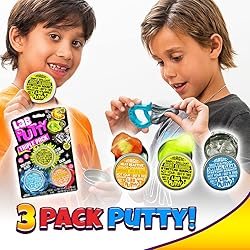 - Let your child’s creativity and curiosity improve with the JA-RU Lab Putty Bundle Set, an awesome collection featuring assorted unique and exciting putty (glow in the dark slime kit, clear slime bulk, magnetic fidget putty, heat sensitive color changing putty, and bouncy putty). This set is for kids who love slime, putty, and interactive play, offering a mix of glowing, bouncing, magnetic, and color-changing fun. Whether for individual play, group activities, or party favors, this bundle delivers hours of entertainment and learning. Mess free and portable toys, Packaged in compact, resealable tin containers, the putties are easy to store and transport, making them ideal for travel, classroom use, or on-the-go play. This bundle set is cool for Halloween slime party favors, birthday goodie bags, stocking stuffers. Easter Basket fillers, Classroom Prizes, and Treasure box rewards. The squishy and stretchy features of each slime putty makes it an awesome stress relief toy for both kids, teens, and adults.