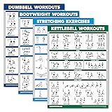 - Palace Learning 4 Pack - Dumbbell Workouts + Bodyweight Workouts + Stretching Exercises + Kettlebell - Set of 4 Workout Charts (18” x 24”, LAMINATED)