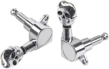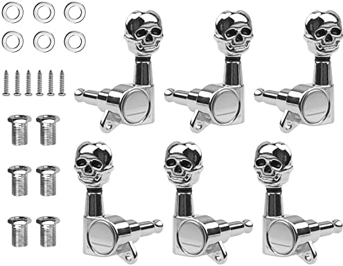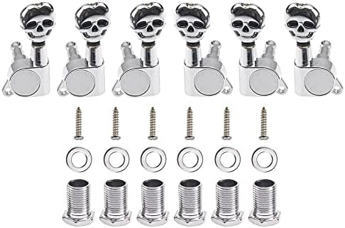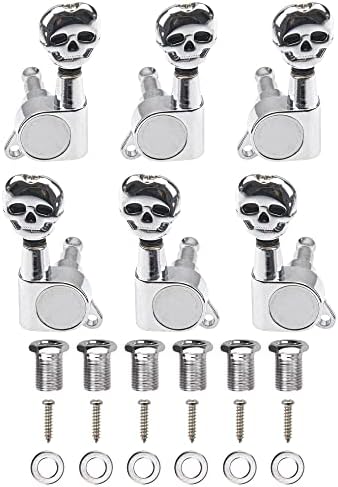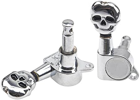 6Pcs Yootones 3L3R Skull Guitar Sealed-gear Tuning Pegs Machine Head Knobs Machine Head Tuners Compatible with Electric Guitar Acoustic Guitar Parts (Silver)