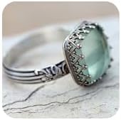 Vintage Silver Mint Green Moonstone Ring 925 Sterling Silver Retro Princess Square Cut Green Moonstone Diamond Prehnite Gemstone Wedding Engagement Ring