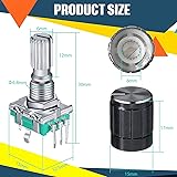 About encoder code switch: these are continuous rotary encoder switches with switches; They can rotate 60 degree rotation degree; Number of digits: 20; Number of Pins: 5 Rotary encoder: the rotary encoder can count forward and backward during the rotation of the output pulse frequency, unlike the rotary potentiometer counting, this kind of rotation counting is not limited; The button on the rotary encoder can be reset to the initial state, that is, counting from 0 Specification information: the shaft measures 6 mm/ 0.24 inch in diameter and 20 mm/ 0.79 inch in length; With built-in button switch (press operation Wide range of applications: the rotary encoder push button can be applied for data entry of modern car music players, volume and on/off control or for data selection through LED or LCD display; Apart from that, it is very suitable for use with PIC Package content: you will receive 5 pieces 360 degree rotary encoder code switch push button that compatible with EC11 Digital Potentiometer and 5 pieces knob caps, a nice combination to meet your personal needs