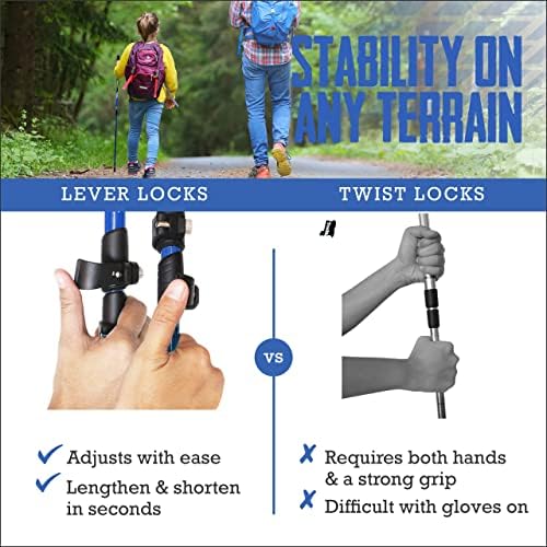 - Easy to Use: Our lever locks can be easily operated with just one hand, which is much easier than the 2-handed twist locks on other walking sticks for hiking.