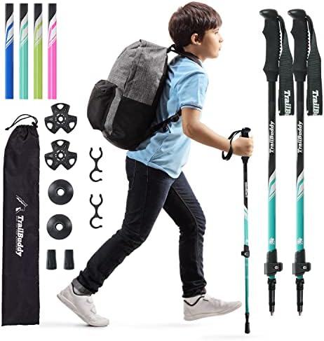TrailBuddy Collapsible Hiking Poles for Kids - Pack of 2 Trekking Poles for Hiking, Camping & Backpacking - Lightweight, Adjustable Aluminum Walking Sticks with EVA Grip