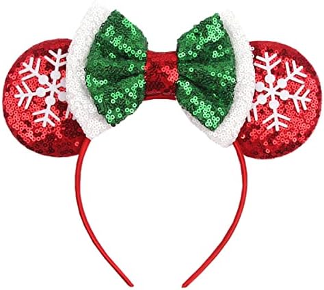 LSHDXD Christmas Mouse Ears Bow Headband Hair Hoop, Glitter Snowflake Hair bands for Christmas Party Supplies Hot Pink Princess Dress Up
