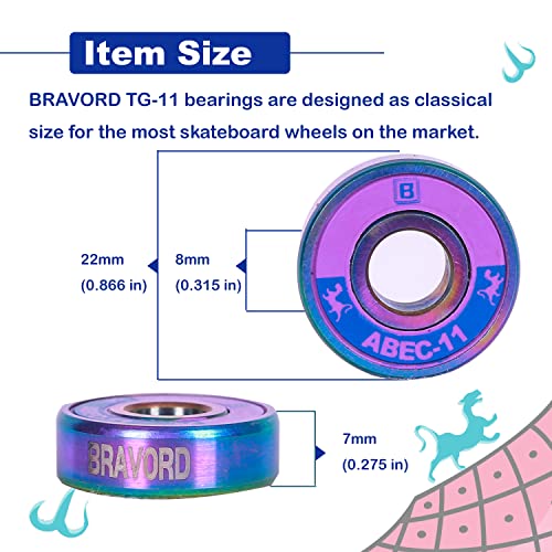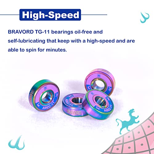 - HIGH SPEED & SMOOTH SPIN: BRAVORD skateboard bearings of the chromium steel balls are oil-free and self-lubricating, which make bearings keep in high speed and spinning for minutes, and the bearings of skateboard meet international abec11, it will give you smoother feeling.