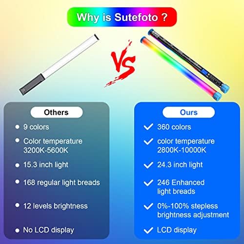 - ♕【Large Size & Powerful brightness】 With 24.3" Large Size & 246 Enhanced LED lamp beads, Our light Completely crush other brands at brightness . 84 cold lights + 84 warm lights + 78 RGB LED Enhanced lamp beads (each equal to 1.6 regular one, More energy efficient ), support CCT mode 2800K-10000K wide-range color temperature adjustment; Support RGBCW mode / HSI full color mode / FX special effect mode / CCT mode four light effect modes. hue, brightness, saturation adjustable.