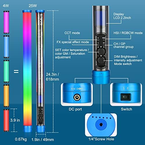 24.3" Large Handheld Light Wand, 2600 lumens RGB LED Video Light 360° Full Colors, RGB Tube Light for Photography Light Stick, CRI 98+, 2800K-10000K /Rechargeable Battery/LCD Display