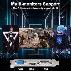 【High Speed】:4G DDR3 video memory with up to 5 Gbps speed ensure a smooth gaming and application experience. 【Stay Cool】:Wide aluminum fin-stack array heatsink extracts more heat and heat dissipation fan distributes it more efficiently, which keep the GPU cooler and running stronger. 【Low Power Consumption】:No external power supply, about 30W full-load power consumption, 300W minimum PSU recommendation. 【Driver Needed】:6.1*4.2*0.8" size even compatible with SFF case match with low profile bracket(included). Just go to NVIDIA's website to download the corresponding driver then plug and play, widely support Windows/Linux/FreeBSD system. 【Reliable】:All solid capacitors, integrated thickened heat dissipation module, strengthened PCB materials, make games and entertainment performance more stable. 3 Year Warranty & 24-hour aftersale technical support.