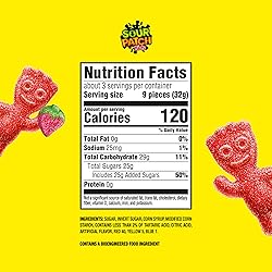 Twelve 3.6 oz bags of SOUR PATCH KIDS Strawberry Soft & Chewy Candy Deliciously juicy strawberry candy that's sweet and fruity, with just a little bit of sour A fat free food with a fun strawberry shape that's perfect for candy bowls Sour gummy candy that is great for enjoying at the movies, at school or at the office, parties, game nights and movie nights Sealed bags keep these strawberry candies soft and fresh