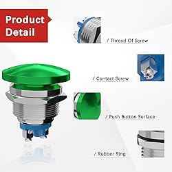 APIELE 22MM Mushroom Head Push Button Switch Momentary Push Button IP65 Waterproof Screw Terminal 12V 24V 36V 110V 250V 5A SPST(22mm, Green)