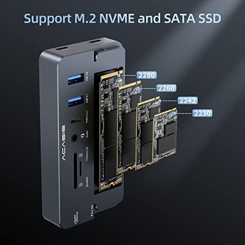 - Estación de acoplamiento USB C ACASIS con carcasa SSD M.2 NVME: No solo el hub ACASIS 10-en-1 proporciona más conexiones para periféricos, sino que también puedes insertar fácilmente una unidad SSD M.2. Funciona con Windows, Mac OS, Linux, Chromebook OS.