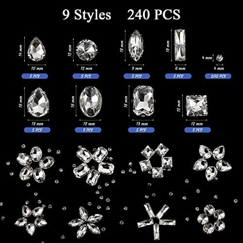 Dilunave 240 Piezas Grandes Piedras de Cristal de Rhinestones de Cristal Claro con engaste de garra de metal para costura, Gemas de diamante, Mix de formas para artesanías, Joyería, Ropa, Zapatos, Disfraz (Claro Blanco)