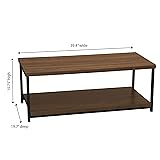 Household Essentials Jamestown Rectangular Coffee Table with Storage Shelf Mid Century Walnut Wood Grain and Black Metal