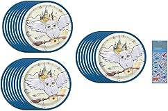 Harry Potter Party Supplies Bundle Pack includes: 24 Dessert Cake Paper Plates 7", 1 Esave Dinosaur Sticker Sheet (No Harry Stickers).